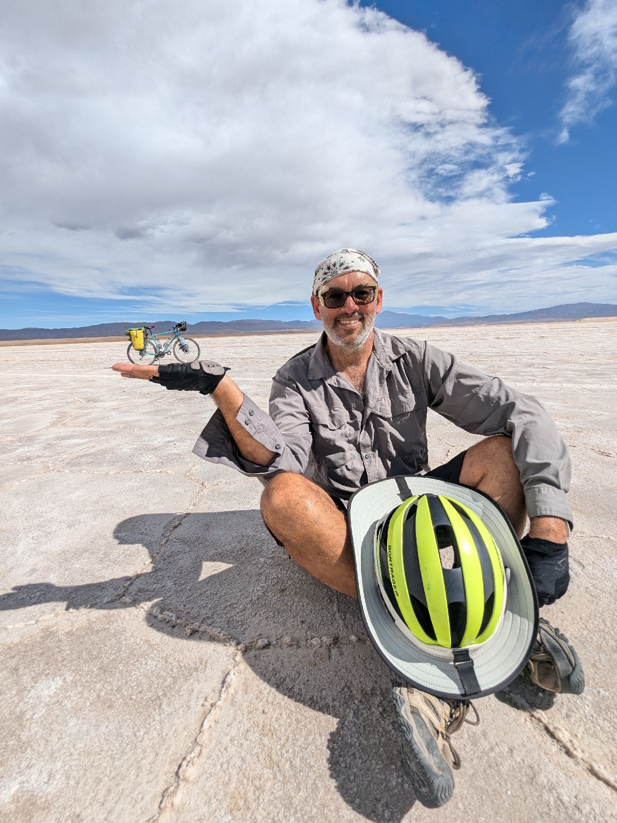 Hi all. I'm now in Salta. From Susques I visited the Salinas Grandes, camped out and then climbed the easy side of the Cuesta de Lipan, which means I descended 6000' on the other side!